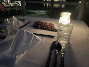 食事中は魚の大群がパシャパシャいっているのを聞きながら、夜風にあたりながら優雅な気分を味わうことができたので良かったです。